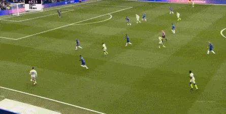 第18分钟,切尔西这次能打出反击,还是帕尔默和埃斯特旺在转换中,捕捉到了罗德里身侧的空间,从而打出了速度: